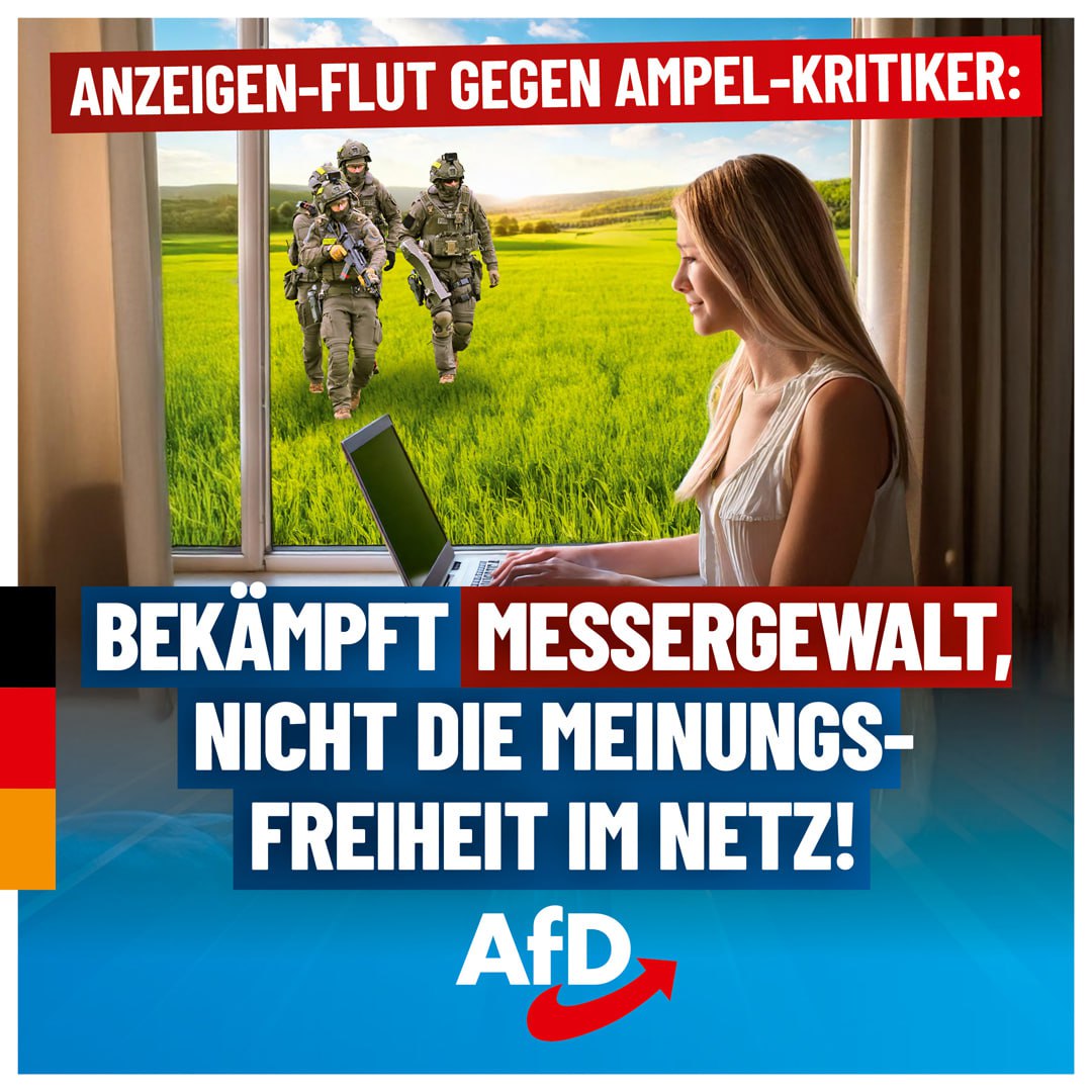 Zurück zu AfD: Strafanzeigen-Flut gegen Ampel-Kritiker: Bekämpft die Messergewalt, nicht die Meinungsfreiheit im Netz!
