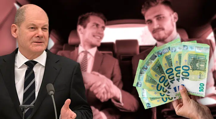 Bild: Hintergrund & Geldhand: Symbolbilder Freepik (2); Scholz: kremlin.ru, Wikimedia Commons, CC BY 4.0; Collage: Wochenblick / Eigenes Werk