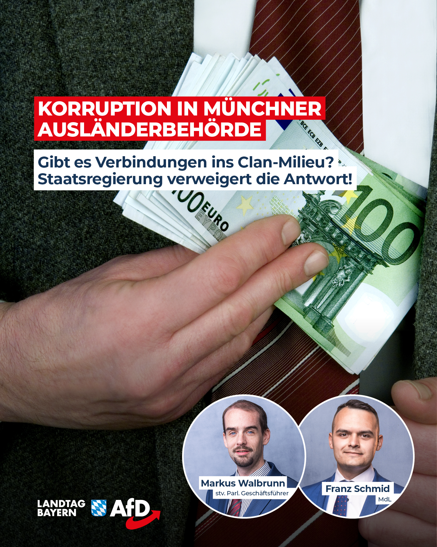 Zurück zu AfD: Korruption in Münchner Ausländerbehörde: Gibt es Verbindungen ins Clan-Milieu? – Staatsregierung verweigert die Antwort!