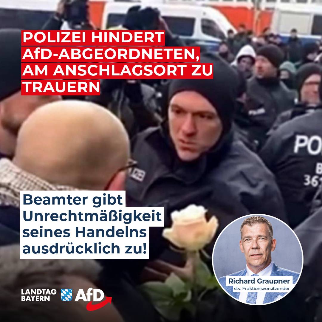 Zurück zu Richard Graupner: Polizei hindert AfD-Abgeordneten, am Münchner Anschlagsort zu trauern – Beamter gibt Unrechtmäßigkeit seines Handelns ausdrücklich zu!