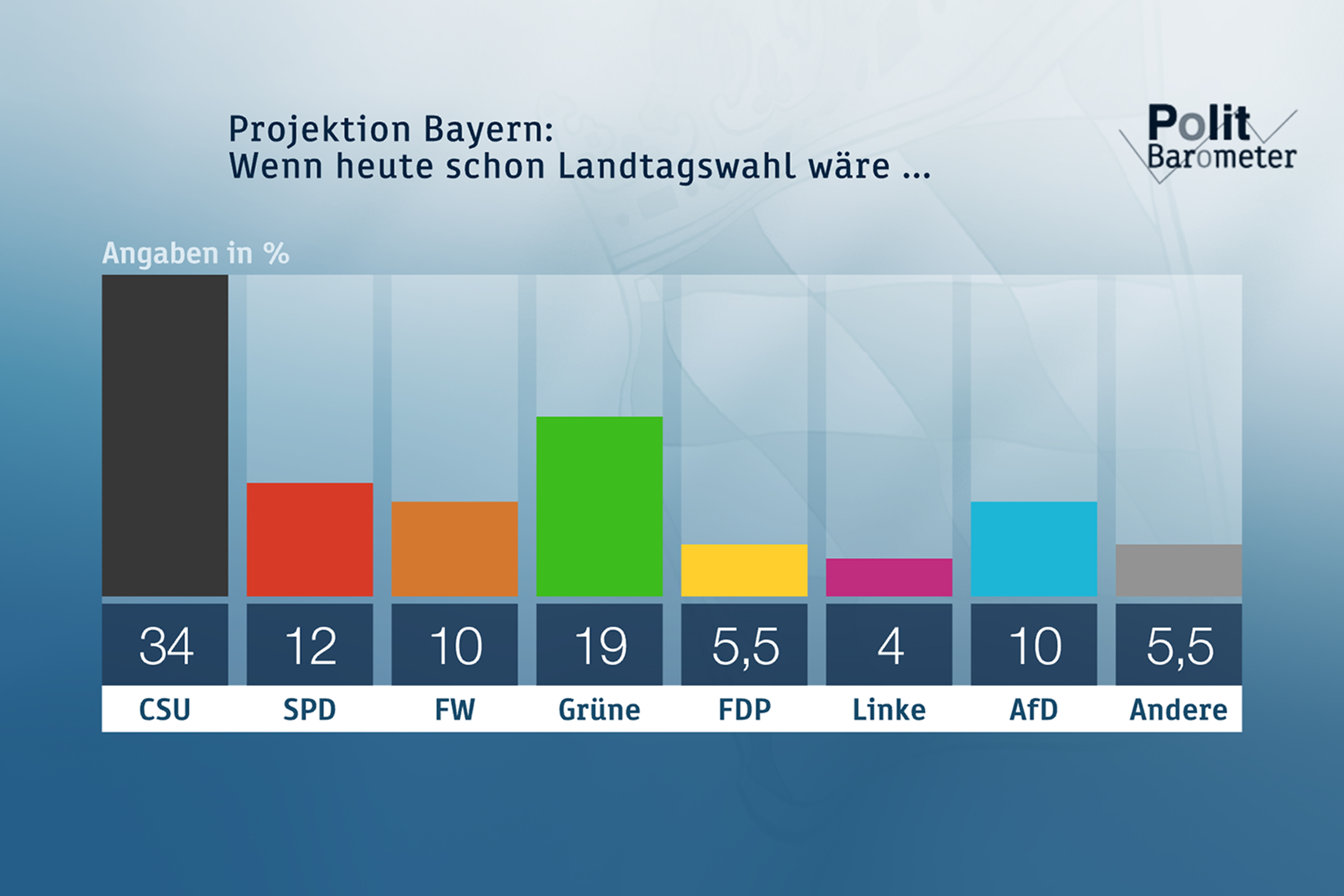 Zurück zu ZDF-Politbarometer Extra Bayern Oktober II 2018: CSU bleibt im Stimmungstief - Grüne legen weiter zu