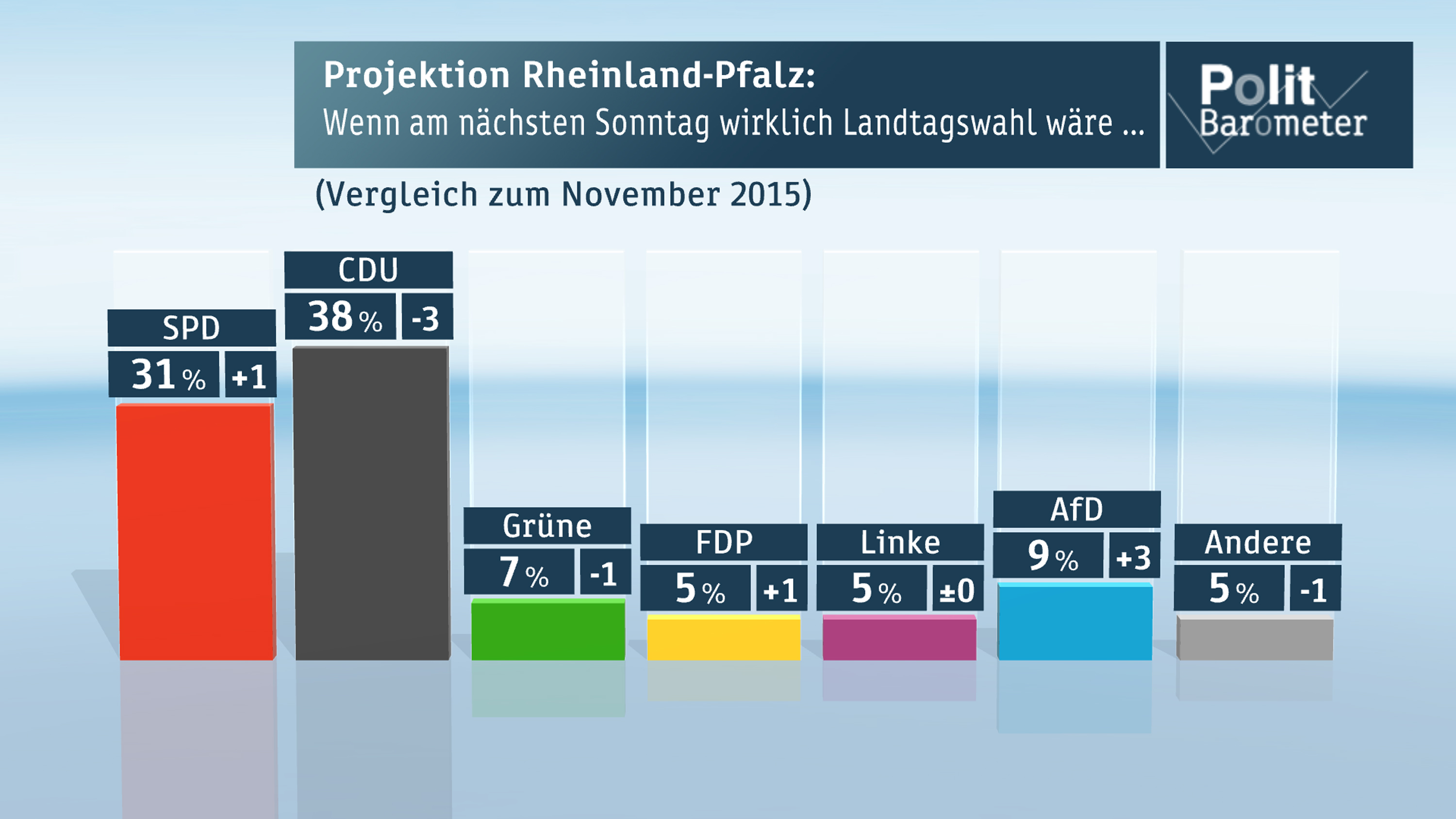 Zurück zu ZDF-Politbarometer Extra Rheinland-Pfalz Januar 2016: CDU trotz Rückgang stärkste Partei - AfD legt zu
