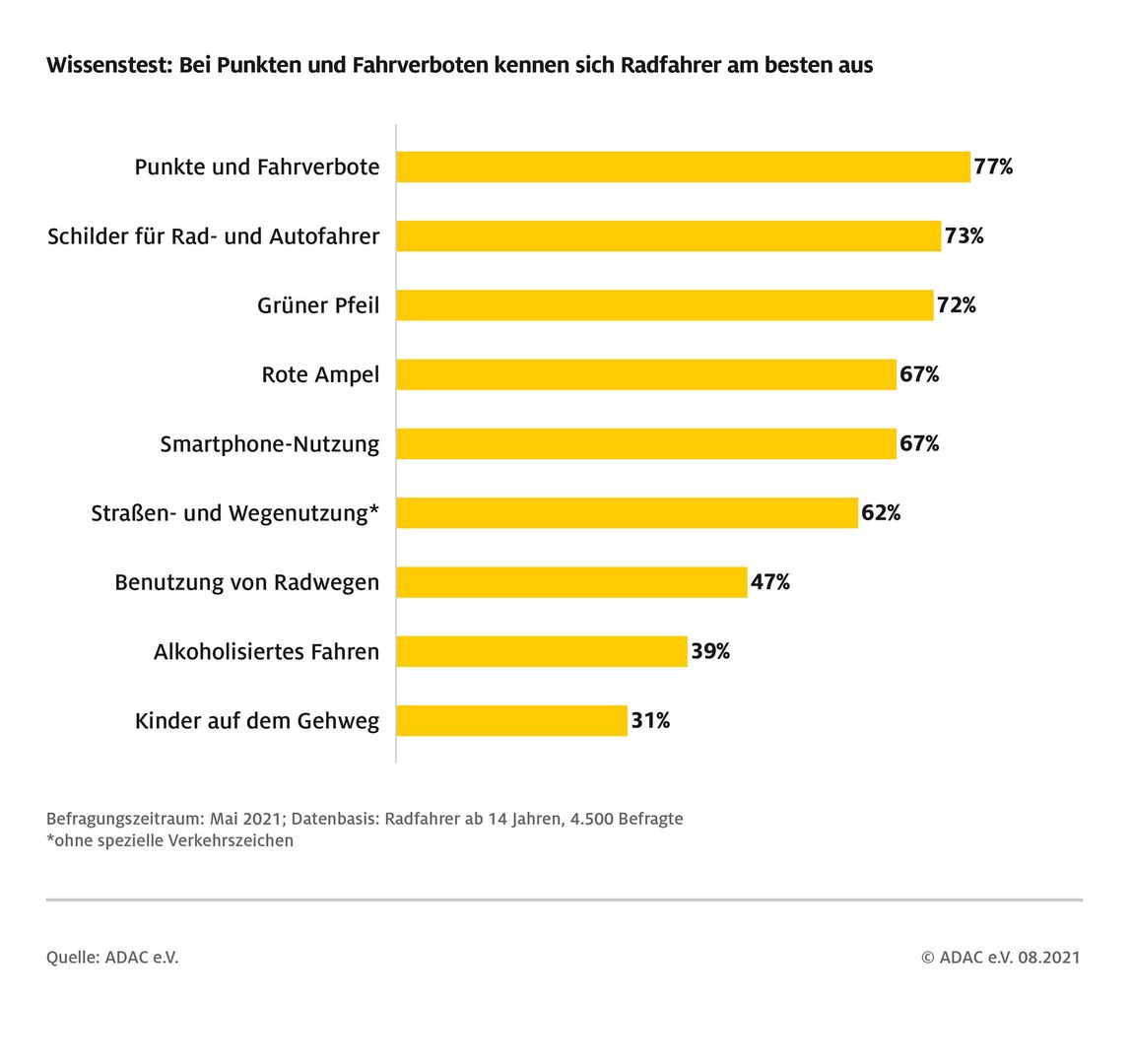Wissenstest für Radfahrer - mäßiges Ergebnis / ADAC macht Umfrage unter 4.500 Fahrradfahrern / Nur ein Prozent konnte fast alle Fragen beantworten, Bei Punkten und Fahrverboten wussten die Radfahrer am besten Bescheid. / Weiterer Text über ots und www.presseportal.de/nr/7849 / Die Verwendung dieses Bildes ist für redaktionelle Zwecke unter Beachtung ggf. genannter Nutzungsbedingungen honorarfrei. Veröffentlichung bitte mit Bildrechte-Hinweis. Bildrechte: ADAC Fotograf: ADAC e.V.