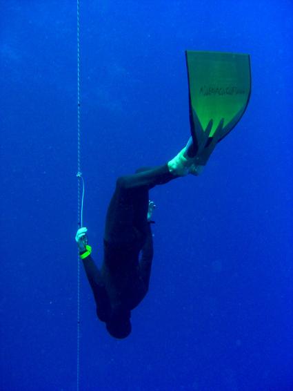 Andreas Güldner bei seinem erfolgreichen Rekordversuch (72 Meter). Bild: Marine
