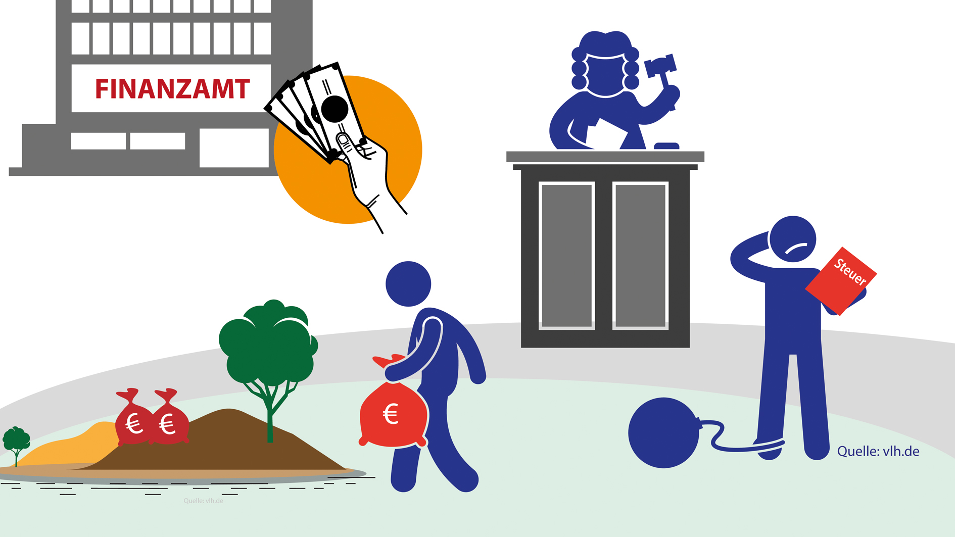 Steuerhinterziehung ist eine Straftat, die leichtfertige Steuerverkürzung eine Ordnungswidrigkeit. Grafik: VLH