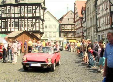 Die Oldtimersternfahrt des ADAC fuhr auch über den Alsfelder Marktplatz. Bild: ExtremNews / Thorsten Schmitt