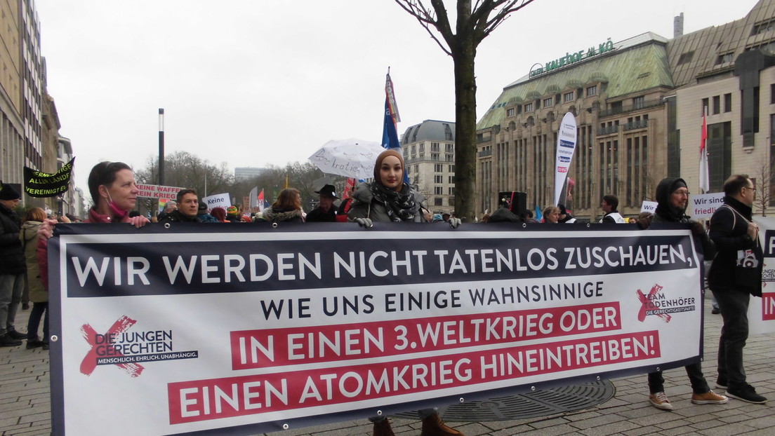 Friedensdemonstration vor Rheinmetall in Düsseldorf (11. Februar 2023) Bild: Felicitas Rabe / RT