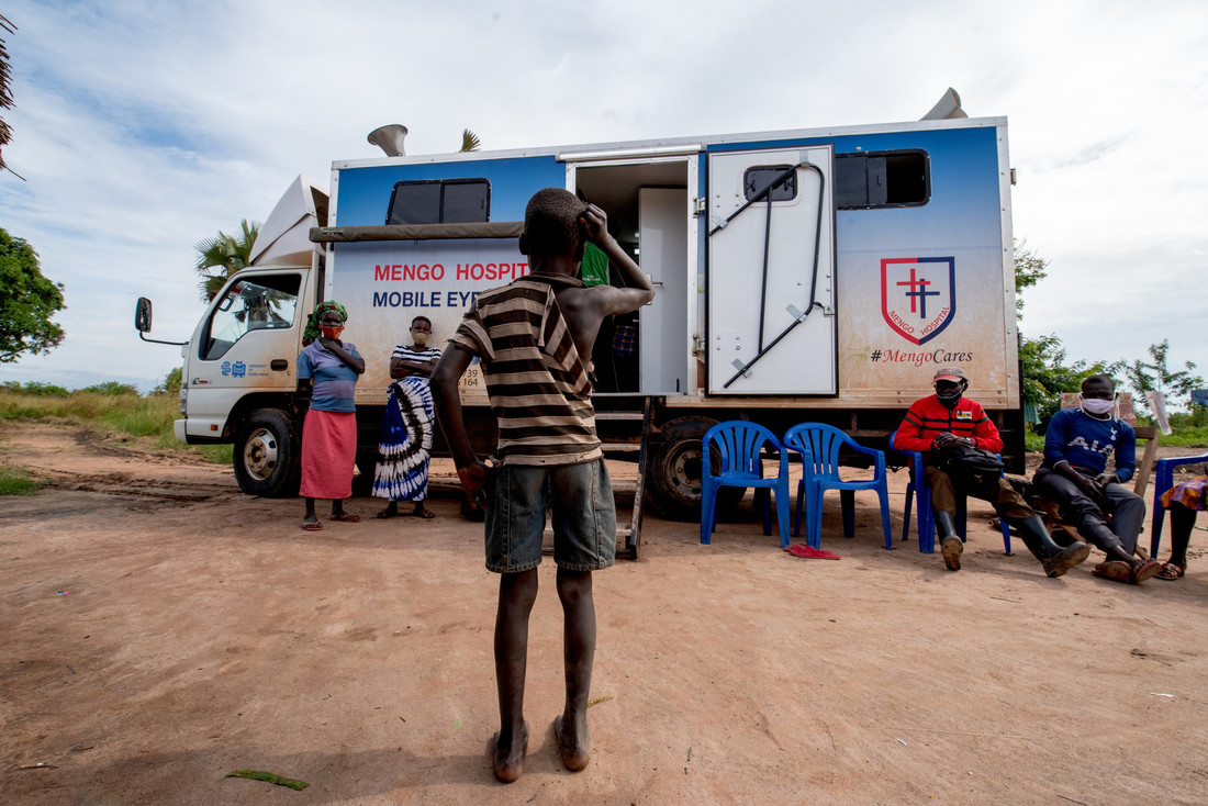 Die Praxis auf vier Rädern erregt Aufsehen in den kleinen Dörfern. Bild: CBM Fotograf: Anthony Atiko/CBM
