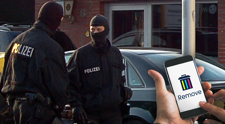 Bild: Symbolbild Razzia: Huhu Uet / Frank Schwichtenberg, Wikimedia Commons, CC BY 3.0; Handy-Löschung: Freepik; Komposition: Wochenblick / Eigenes Werk