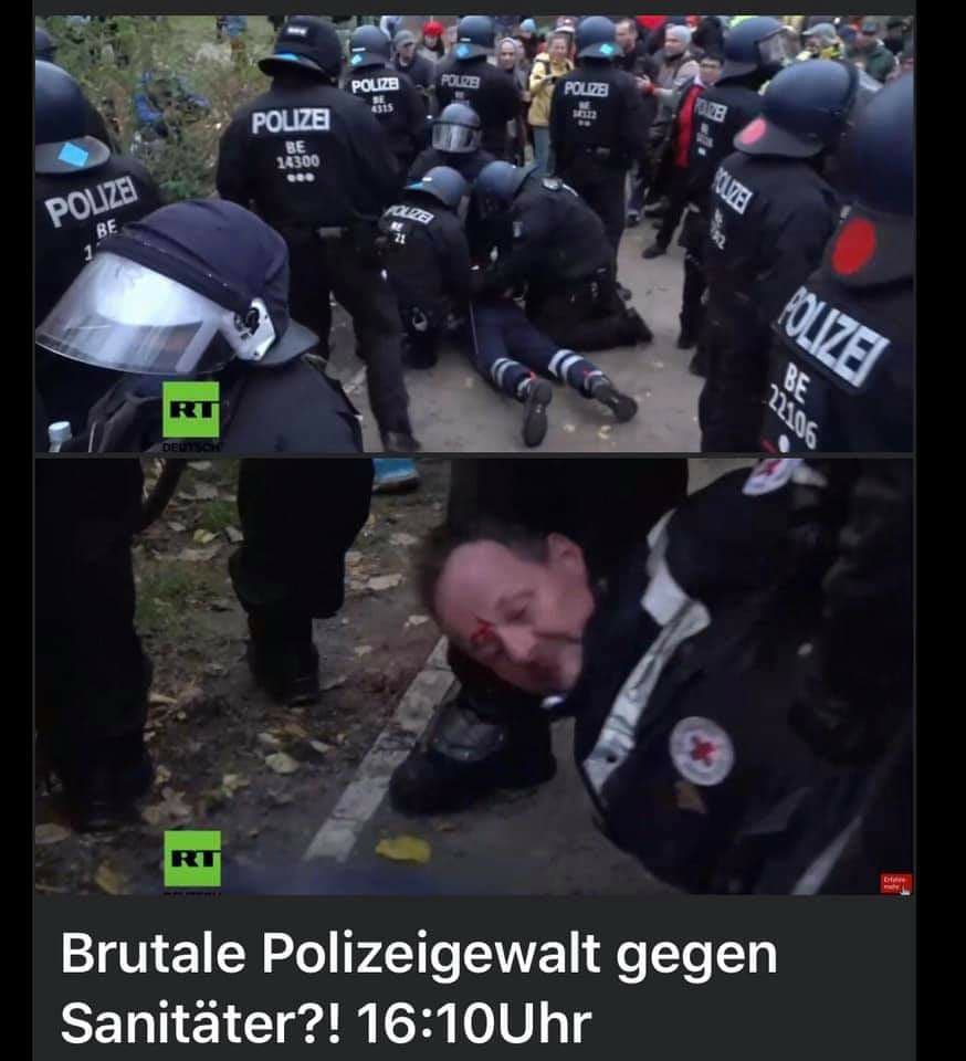 Sanitäter werden von der Berliner Polizei am 18.11.2020 verhaftet und daran gehindert Verletzten zu helfen.