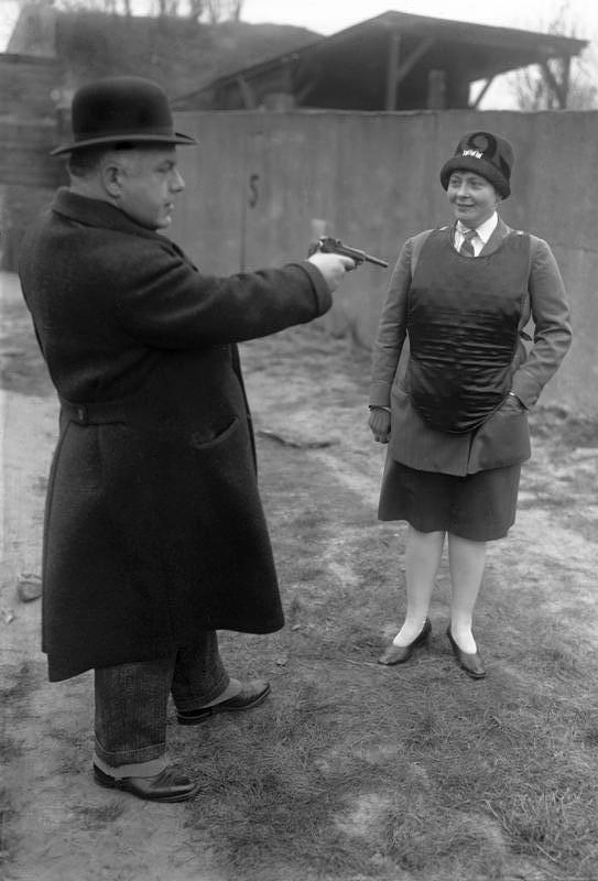 Demonstration einer Schutzweste durch die Berliner Polizei (1931) (Symbolbild)