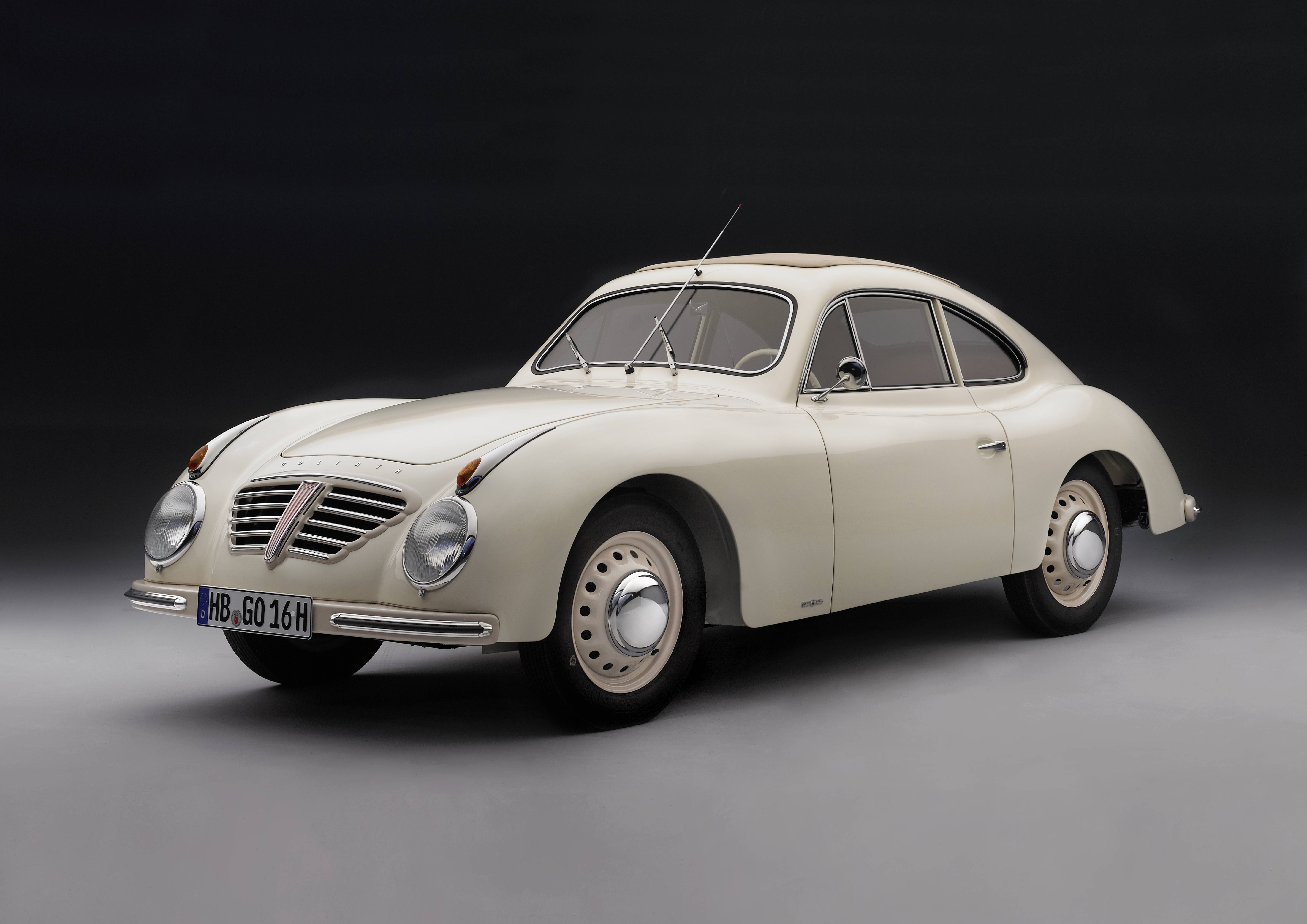Zurück zu Borgwards Benzinspar-Clou: 1951 debütiert auf der IAA der Benzin-Direkteinspritzer im schnittigen Goliath Sportcoupé