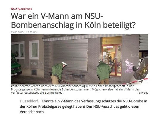 Zurück zu NSU: Verübte ein V-Mann des Verfassungsschutzes NRW den Bombenanschlag in der Kölner Probsteigasse?