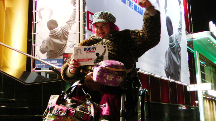 Unter den Kartenempfängern war auch diese Frau im Rollstuhl - Hier vor dem TUI-Operettenhaus in Hamburg. Bild: Facebook / Max Bryan