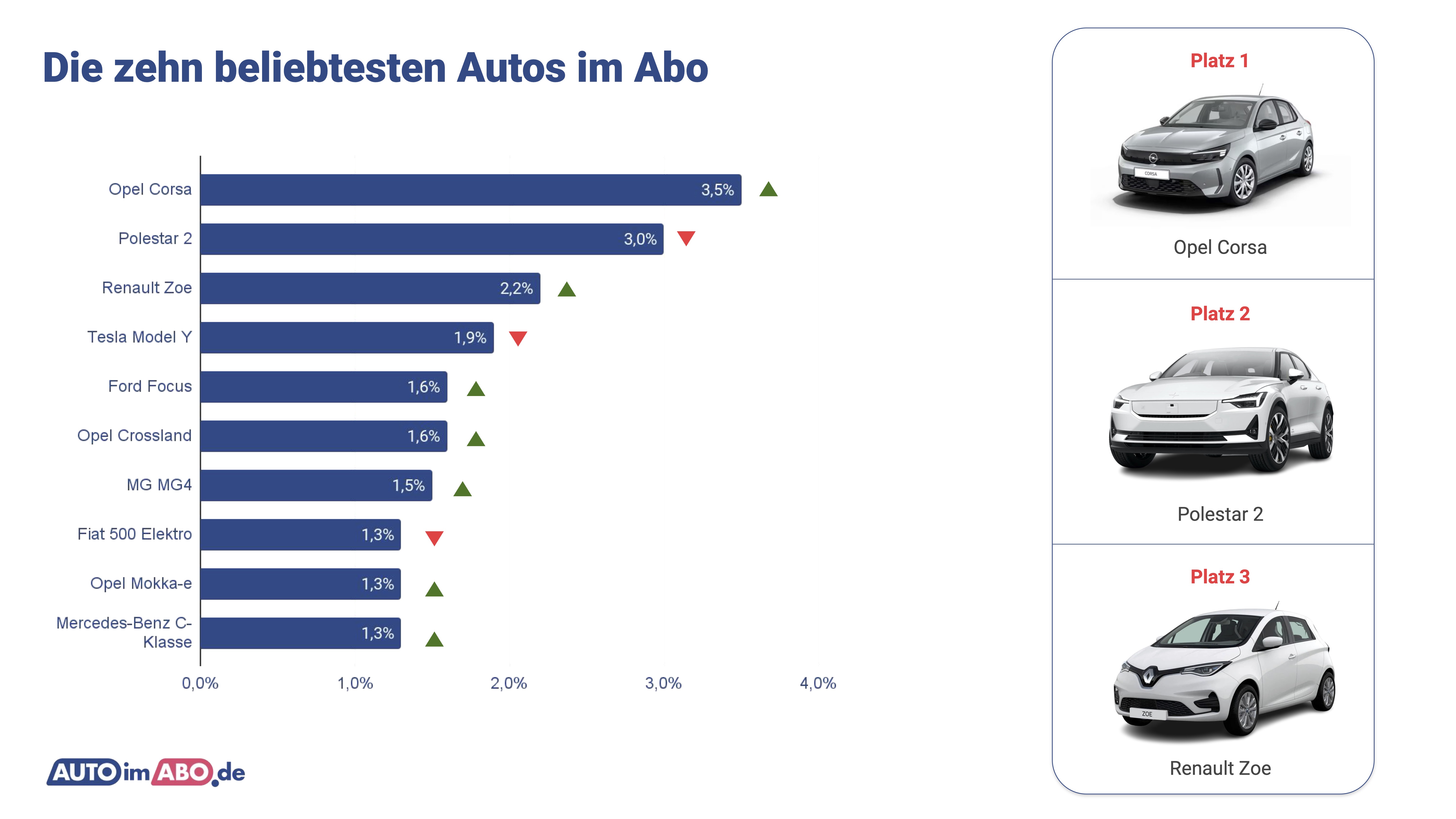 Die zehn beliebtesten Autos im Abo im Jahr 2024
