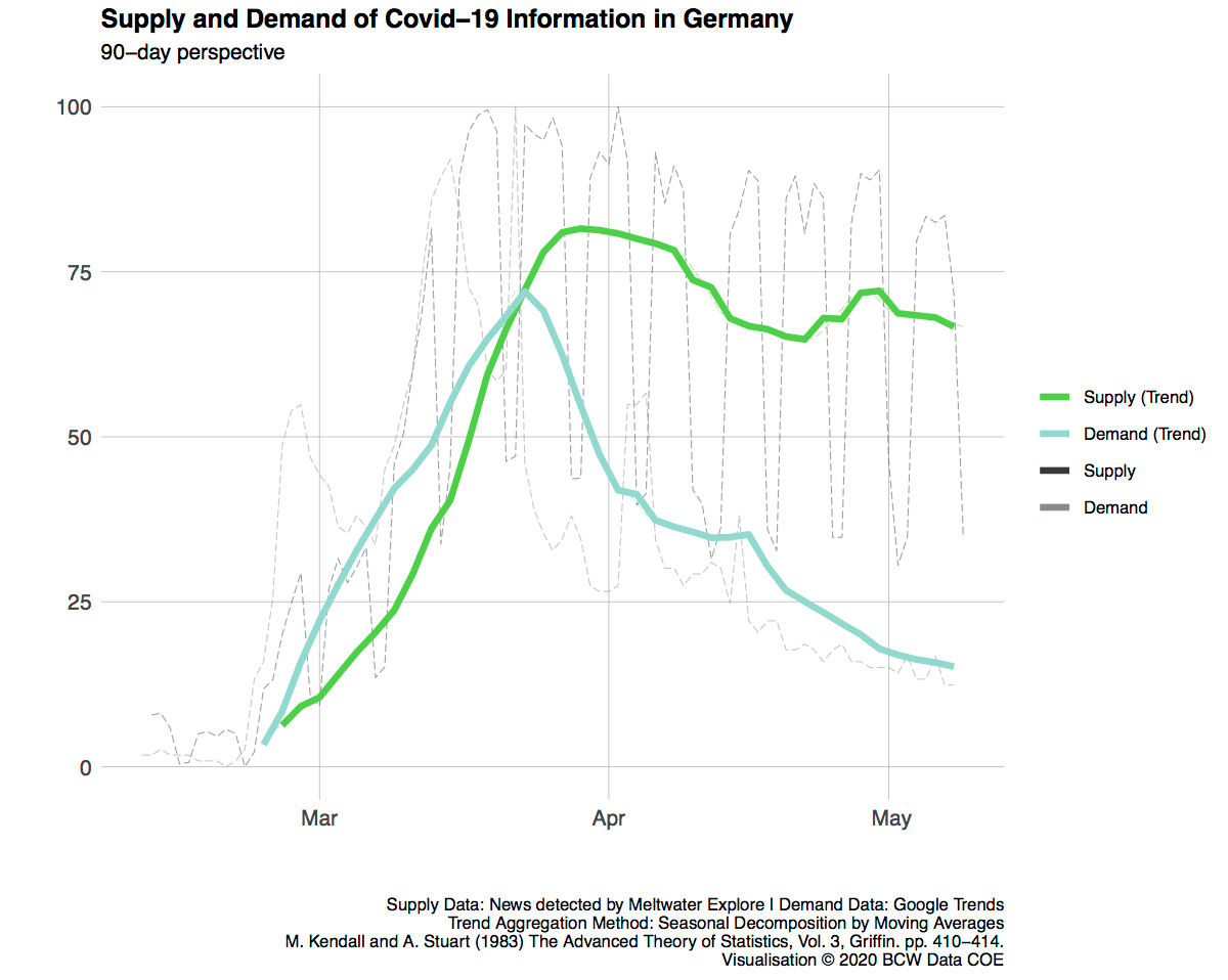 Interesse der Deutschen am Thema Coronavirus im freien Fall - Informationsüberangebot der Medien - Klimawandel kaum noch nachgefragt / Bild: "obs/bcw - Hamburg / Cohn & Wolfe/© 2020 BCW Data COE"