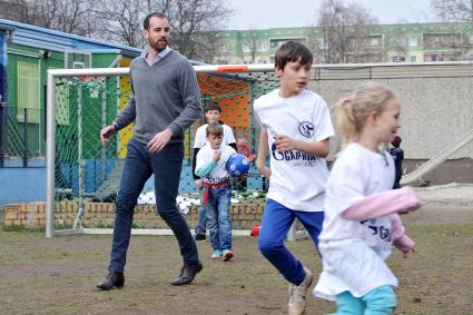 Ex-Fußballnationalspieler Christoph Metzelder beim Kicken mit Berliner Straßenkindern / Bild: "obs/GAZPROM Germania GmbH/DANA MANTHE"