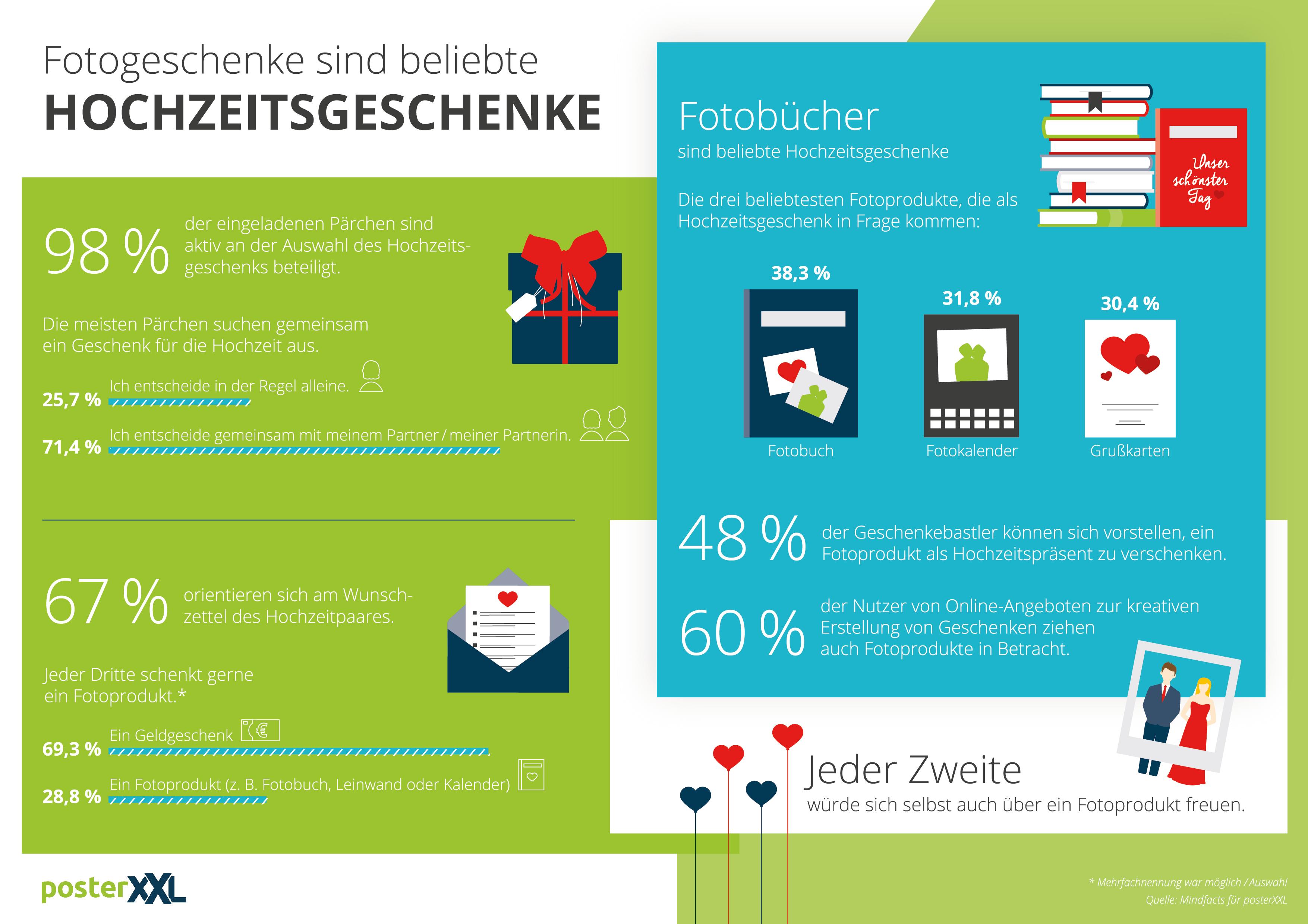 Grafik: Umfrageergebnisse. Das sind die beliebtesten Hochzeitsgeschenke. Bild: "obs/posterXXL"