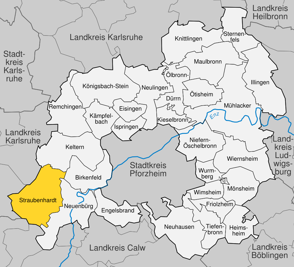 Lage der Gemeinde Straubenhardt im Enzkreis (BW)