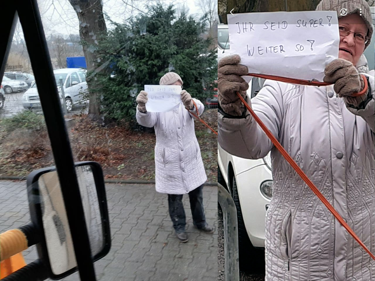 Passanten erfreuen sich der Demonstranten: "Ihr seid Super! Weiter so!", Autokorso Pforzheim 31.01.2021