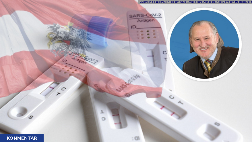 Bild: Österreich-Flagge: Pavel / Pixabay; Covid-Antigen-Tests: Alexandra_Koch / Pixabay; Montage: AUF1 / Eigenes Werk