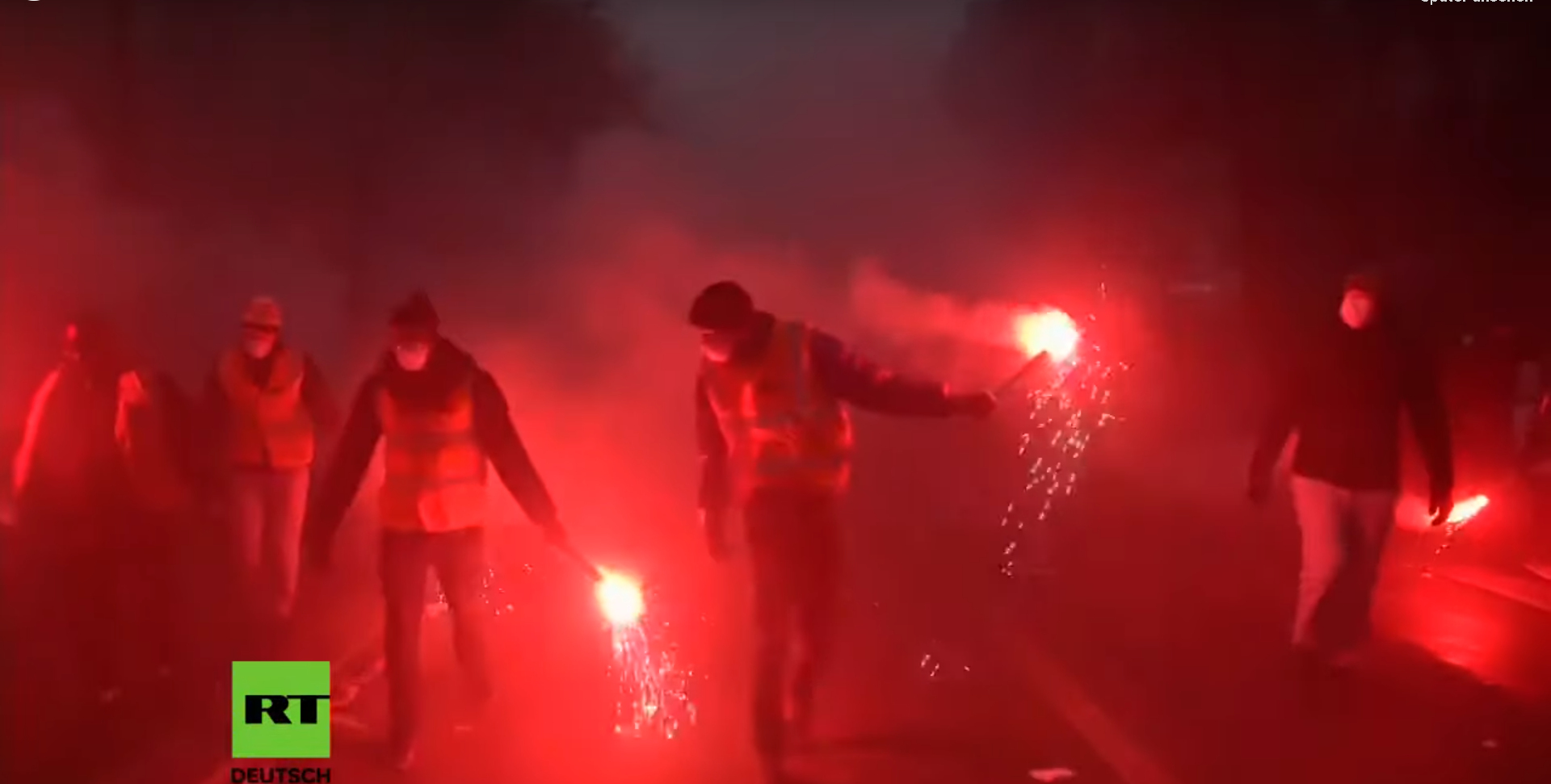Bild: Screenshot Youtube Video: "LIVE [Kamera 2]: Ausschreitungen in Paris im Zuge des Generalstreiks gegen Macrons Reformpläne" (https://www.youtube.com/watch?time_continue=583&v=38j0andp9KQ&feature=emb_logo) / Eigenes Werk