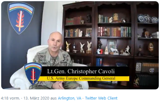 MARCH 12, 2020. WIESBADEN, HE, GERMANY Commanding General of U.S. Army Europe Lt. Gen. Christopher Cavoli discusses new information regarding COVID-19 in Europe.