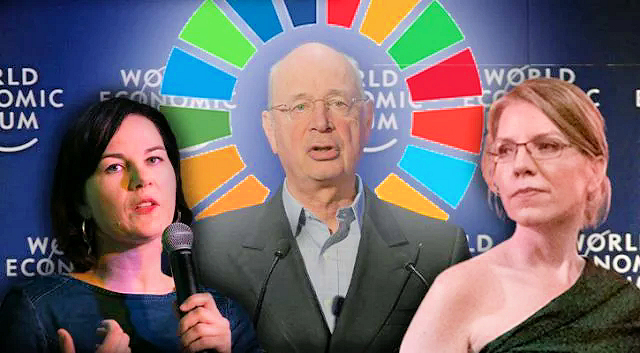 Bild: Schwab: World Economic Forum, Wikimedia Commons, CC BY-SA 2.0; Baerbock: Bündnis 90 / Die Grünen NRW, Flickr, CC BY-SA 2.0; Agenda2030-Kreis: paolo.marraffa, Wikimedia Commons, CC BY-SA 4.0; Gewessler/Wikimedia, Manfred Werner (Tsui)/CC by-sa 4.0; / WB / Eigenes Werk