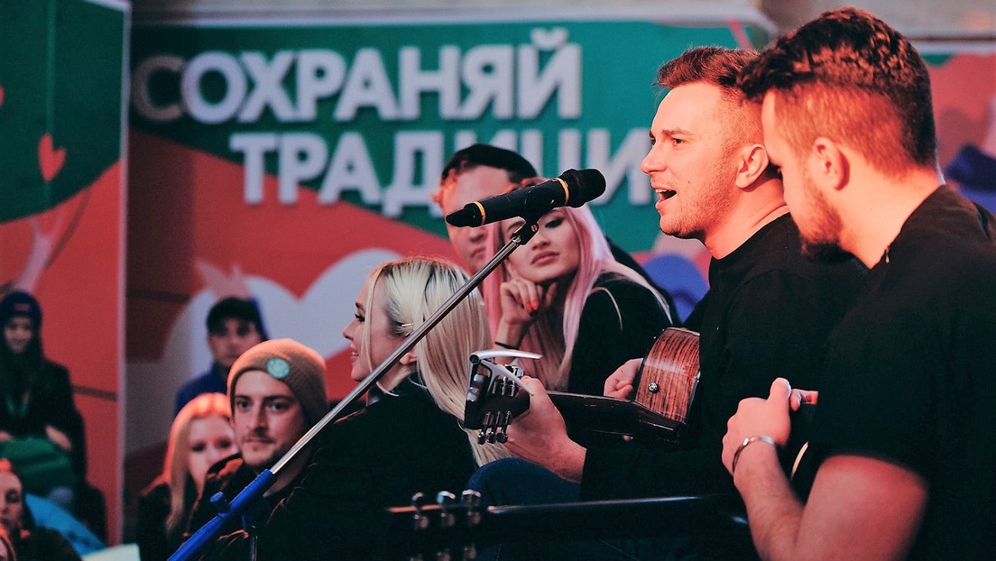 Die Teilnehmer des Forums "Der junge Süden". Das Banner trägt die Aufschrift "Bewahre die Tradition". Bild: https://www.югмолодой.рф