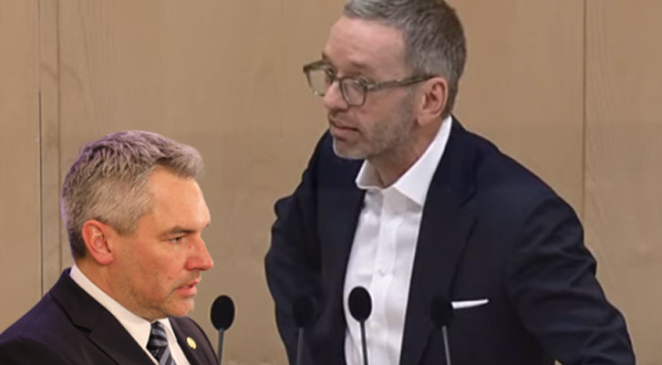 Bild: Herbert Kickl Screenshot Youtube/ Foto Karl Nehammer Europäische Volkspartei, CC BY 2.0 via Wikimedia Commons/Komposition WB / Eigenes Werk