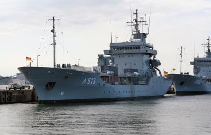Der Tender Rhein vom 3. Minensuchgeschwader liegt an der Pier in seinem Heimathafen