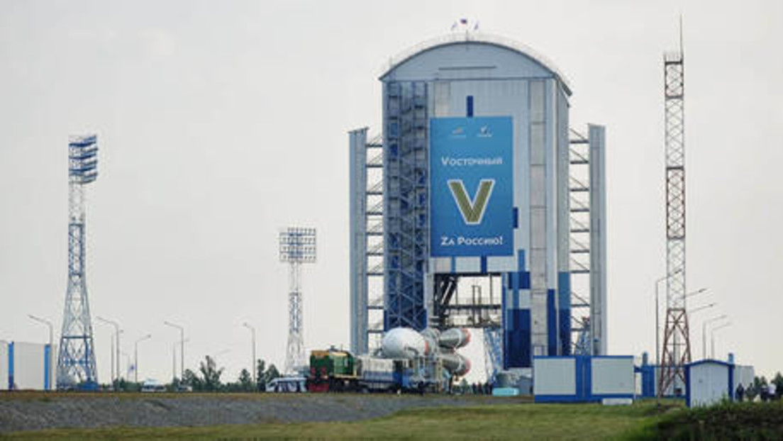 Sojus-Rakete mit der Sonde Luna 25 auf dem Weg zum Startplatz auf dem Kosmodrom von Wostotschny in Russland transportiert, 8. August 2023. Bild: RT / Roskosmos/RSC Energia