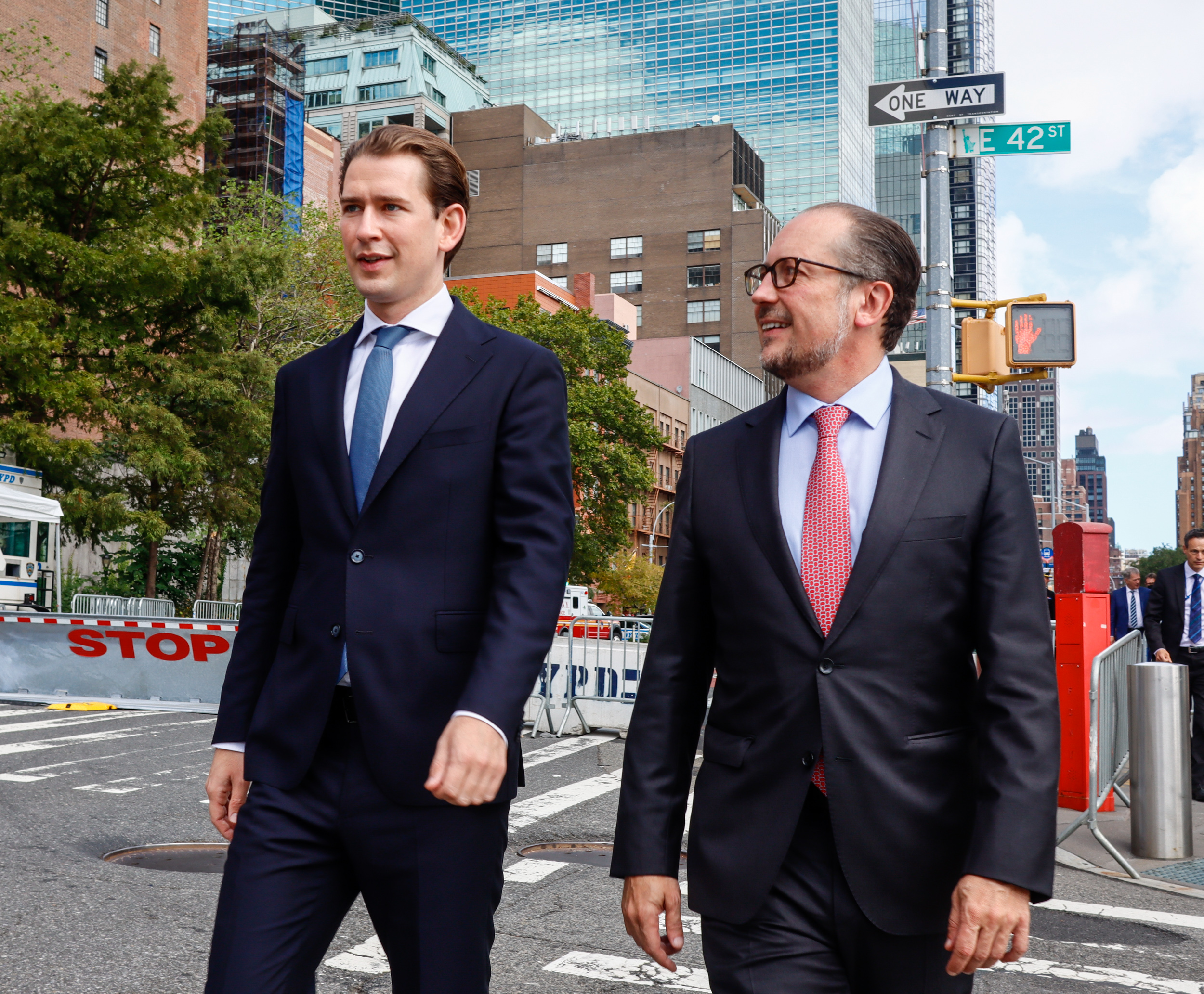 Alexander Georg Nicolas Christoph Wolfgang Tassilo Schallenberg mit seinem Förderer, Intimus und Amtsvorgänger Bundeskanzler Sebastian Kurz (2021)