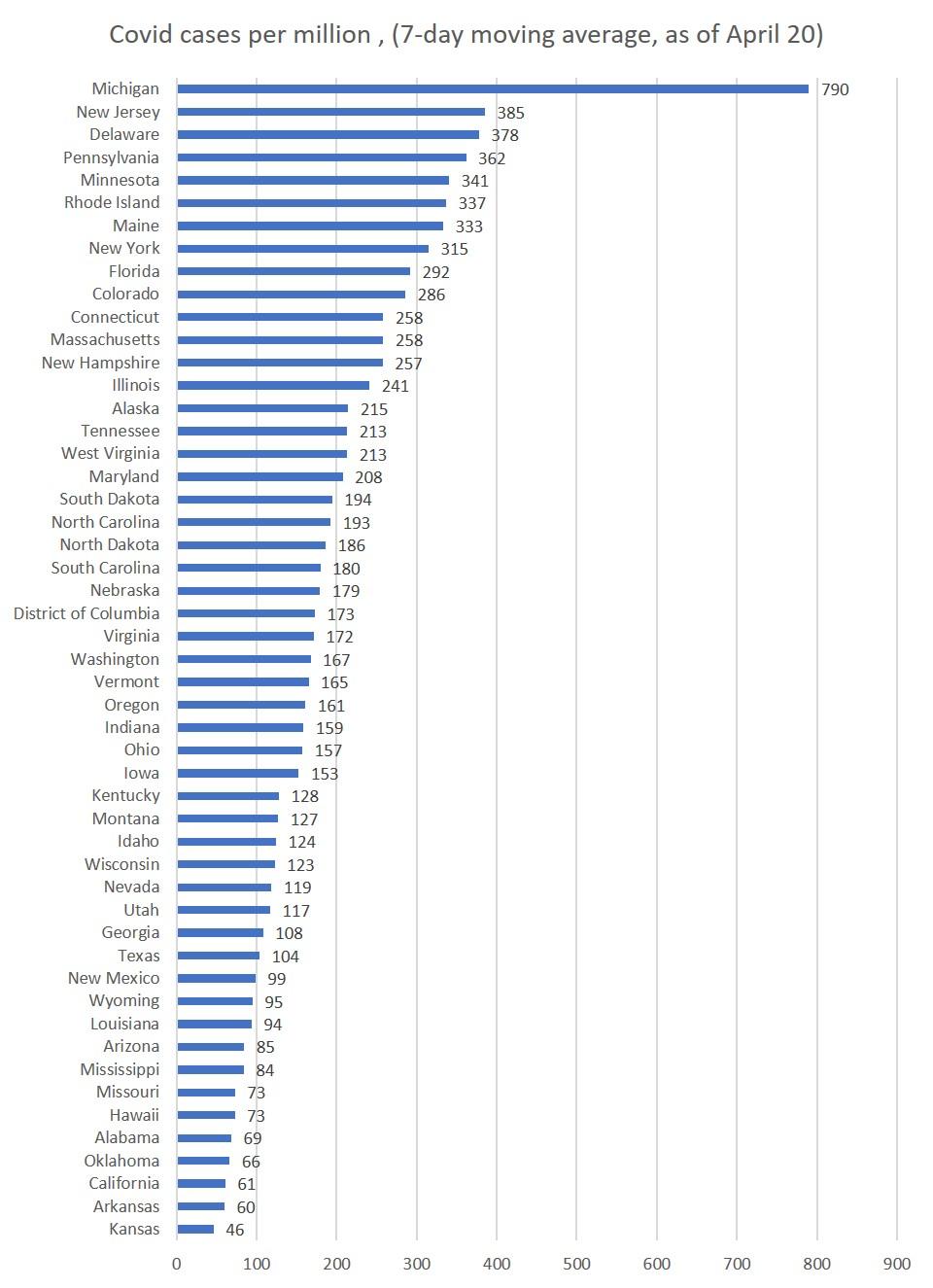 Zurück zu Texas beendete Lockdowns und Maskenpflicht: Covid jetzt am stärksten in Staaten mit aufrechten Lockdown-Maßnahmen