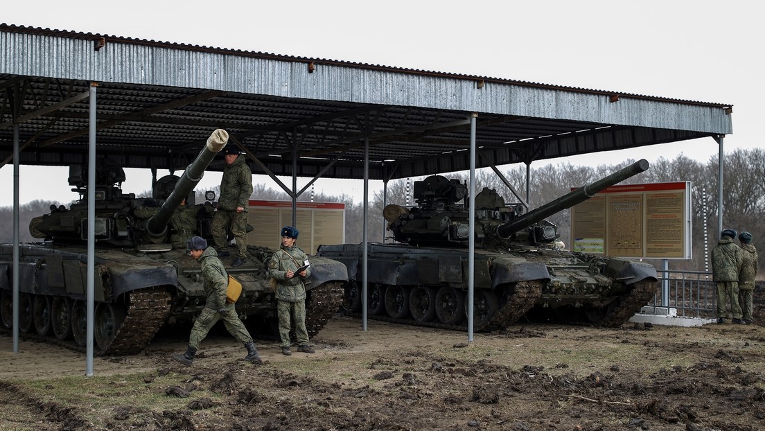 Panzerfahrer des Wehrkreises "Süd" trainieren am 14. Dezember 2021 auf dem Übungsplatz Molkino in der südrussischen Region Krasnodar.
