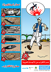Ein Poster für die Aufklärung über die Gefahren durch explosive Kriegsreste. Bild: Handicap International