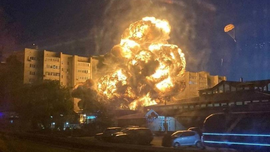 Brand in Jejsk nach Absturz eines Militärflugzeugs, Aufnahme eines Augenzeugen.