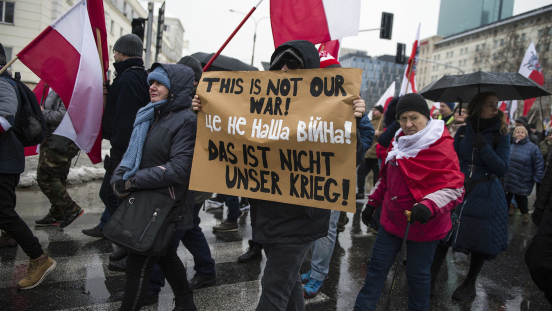 Auf dem Archivbild: Polnische Einwohner bei einer Antikriegsdemonstration in Warschau Bild: Gettyimages.ru / Attila Husejnow/SOPA Images/LightRocket