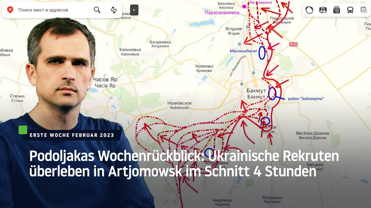 Zurück zu Podoljakas Wochenrückblick: Ukrainische Rekruten überleben in Artjomowsk im Schnitt vier Stunden