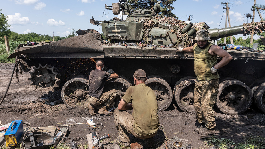 Ukrainisches Militär versucht die Reparatur eines Panzers Bild: Gettyimages.ru / Diego Herrera Carcedo/Anadolu Agency