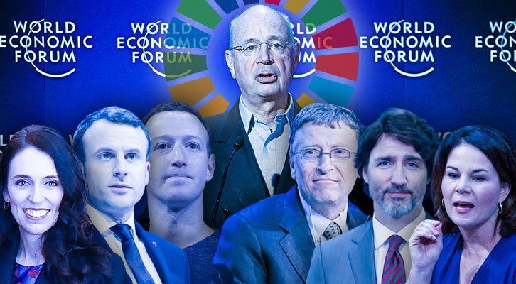 Bild: Schwab, Gates: World Economic Forum, Wikimedia Commons, CC BY-SA 2.0; Ardern: Governer-General New Zealand, Wikimedia Commons, CC BY 4.0; Baerbock: Olaf Kosinsky, Wikimedia Commons, CC BY-SA 3.0 DE; Macron: Foundations World Economic Forum, Wikimedia Commons, CC BY 2.0; Zuckerberg: Anthony Quintano, Wikimedia Commons, CC BY 2.0; Trudeau: Justin Trudeau, Wikimedia Commons CC BY 3.0; Collage: Wochenblick / Eigenes Werk