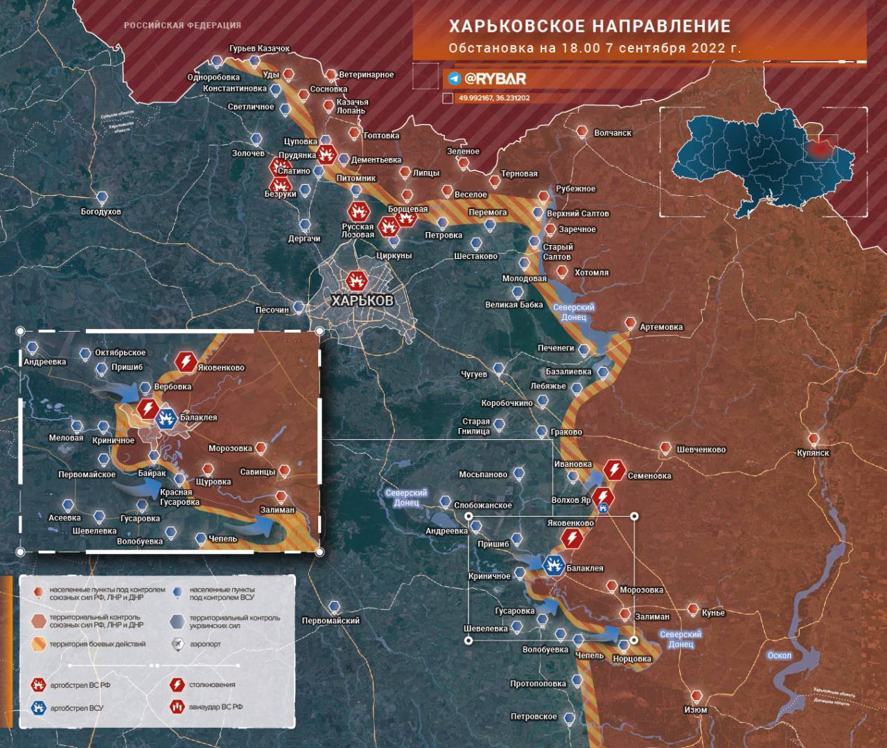 Frontgeschehen am 07.09.2022 um 18 Uhr. Bild: https://t.me/rybar/38348 / RT