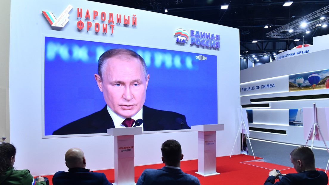Übertragung der Rede des russischen Präsidenten Wladimir Putin auf der Plenarsitzung des XXV. Internationalen Wirtschaftsforums in Sankt Petersburg
