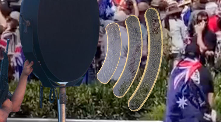 Bild: Symbolbild LRAD-Device: US Navy, Wikimedia Commons, gemeinfrei; Protest: Screenshot Twitter; Wellen: Freepik; Collage: Wochenblick/Eigenes Werk
