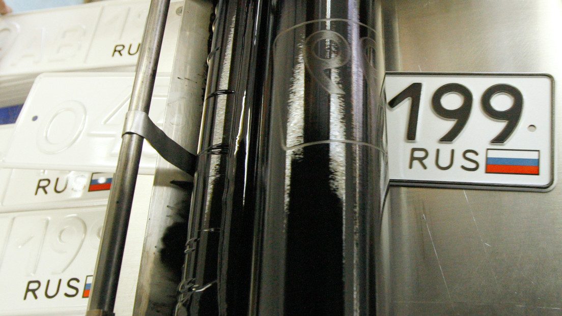 Symbolbild: Die Herstellung neuer Kennzeichen für Fahrzeuge mit der Seriennummer 199 in Moskau Bild: Sputnik / Anton Denissow