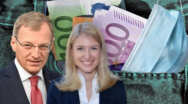 Bild: Geld/Hose: Pixabay; Maske: Freepik; Stelzer & Haberlander: beide IMAGO / Rudolf GIgler; Collage: Wochenblick/Eigenes Werk