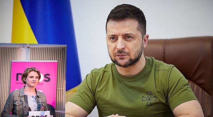 Bild: Meinl-Reisinger: Nicole Heiling / NEOS, Wikimedia, CC BY-SA 2.0; Foto Selenski: President Of Ukraine from Україна, Wikimedia, CC0 1.0; Montage: Wochenblick/ Eigenes Werk