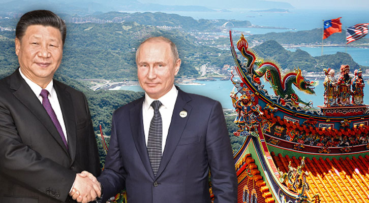 Bild: Hintergrund: Pixabay; USA/Taiwan-Flaggen: Freepik; Putin/Xinping: kremlin.ru. Wikimedia Commons, CC BY 4.0; Collage: Wochenblick / Eigenes Werk