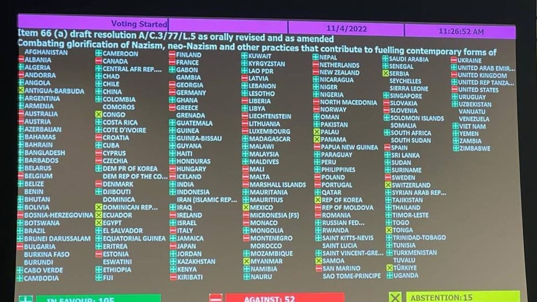 Screenshot des Abstimmungsergebnisses Bild: RT / UNO