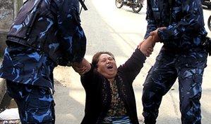 Nepalesische Polizei nimmt eine Tibeterin fest. Bild: IGFM